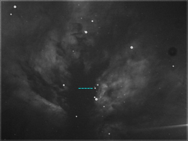 La stella indicata, è salita in cica 6 min da una luminosità di fondo cielo fino 15mag che si vede in questa immagine.Gia stasera col mio strumento (200 Newton)è invisibile.