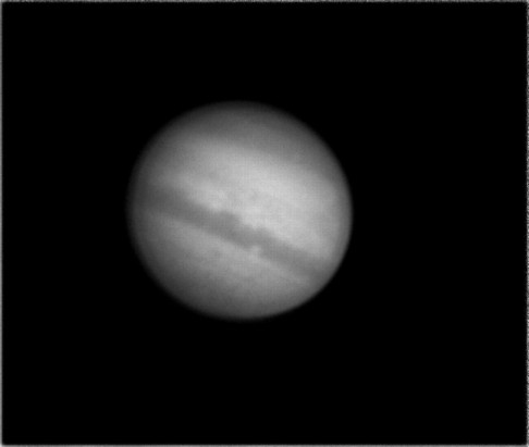 Giove immerso nella impietosa foschia mattutina. Poco prima dell’alba, solo un paio di riprese poi addensamenti di forte umidità.Questa immagine ottenuta sempre con Newton Marcon 200 , DMK41mono in proiez.oculare e levataccia 02.30 TU.