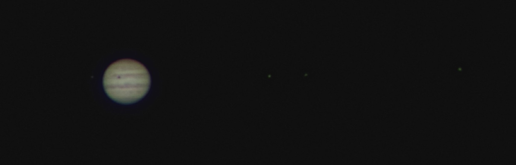 barlow 3X focale 3600 mm. Canon 450D (4 fotogrammi). Giove ripreso in Val D’Ega (BZ) 1500 mt,
