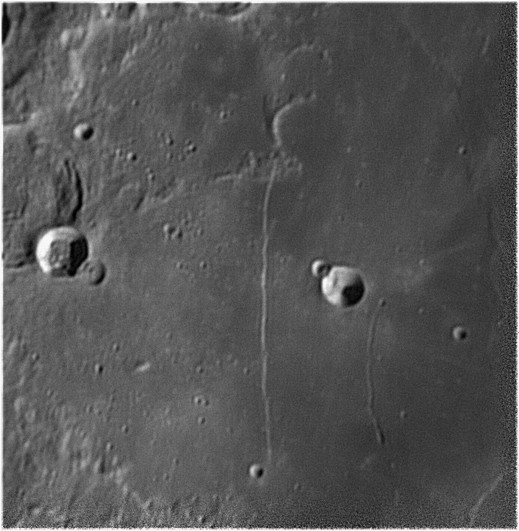 Particolare lunare, Rupe Recta tra i crateri Birt e Thebit. Un dirupo 110 Km di lunghezza per 300 mt di altezza.