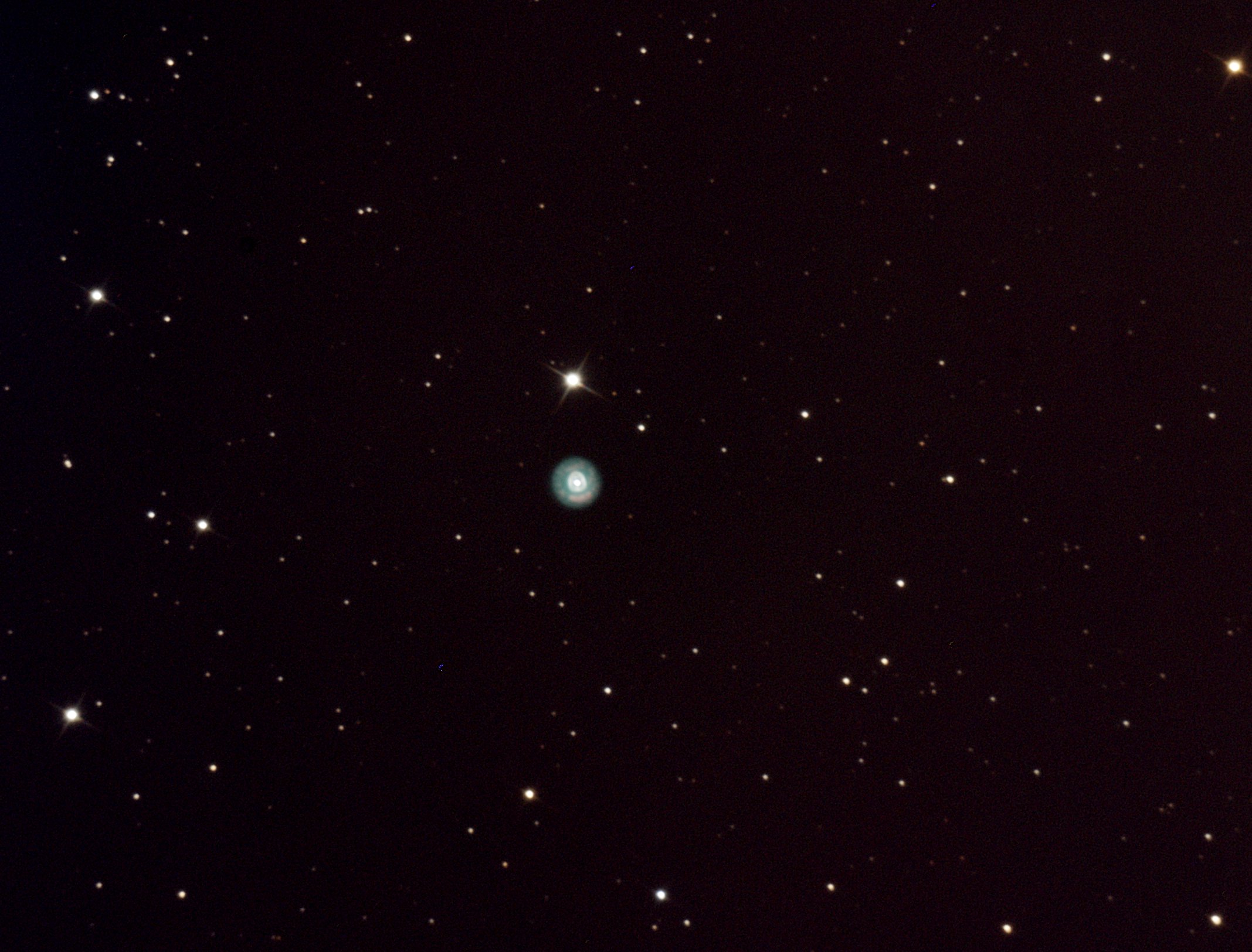 Nella costellazione dei Gemelli, questa piccola ma caratteristica nebulosa planetaria, NGC 2392. Ripresa su CCD QHY10, elaborando 20 pose da 90" cad, con Nebulosity3. Nessun dark o flat. Purtroppo ripresa in una serata trasparente si, ma con un seeing orribile e presenza della luna al 1° quarto.