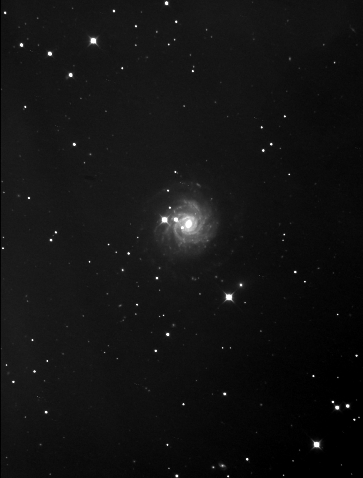 Galassia in Leo Minor, affascinante per la visione di tutta la sua complessa imponente spirale. Mag. superficiale 13.9. Integrazione di 7 esposizioni per un totale di 62 min. su CCD QHY10 bin 2×2 a -15° ed elaborata solo con Nebulosity 2.4.No dark no flat.