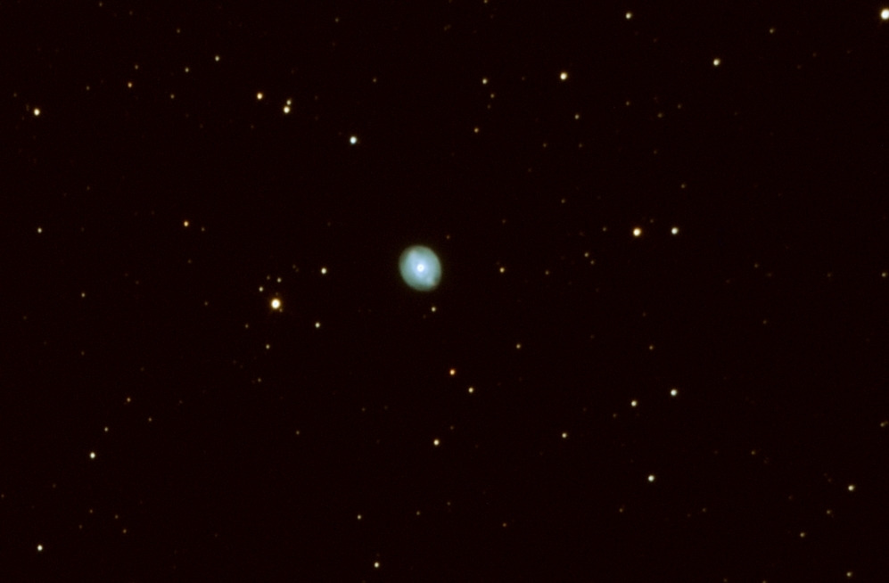 Ai limiti nord della costellazione del Cigno, questa piccola planetaria abbastanza luminosa, ripresa con pochi minuti di posa(12 ft da 60"cad.) su CCD QHY10 elaborata con Nebulosity3.