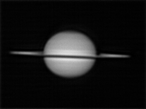 Una pausa di sereno in una serata variabile. Qualche nuvola, un po di sereno trasparenza buona. Sono bastati pochi minuti per bloccare l’immagine di un Saturno, che riesce sempre a sorprendere per la sua mutevolezza. Visibili tenui bande sugli emisferi, gli anelli quasi di profilo e l’ombra del globo sugli stessi che spacca la continuità della geometria.Telescopio Newton 200 Marcon e webc. MagzeroMz5.