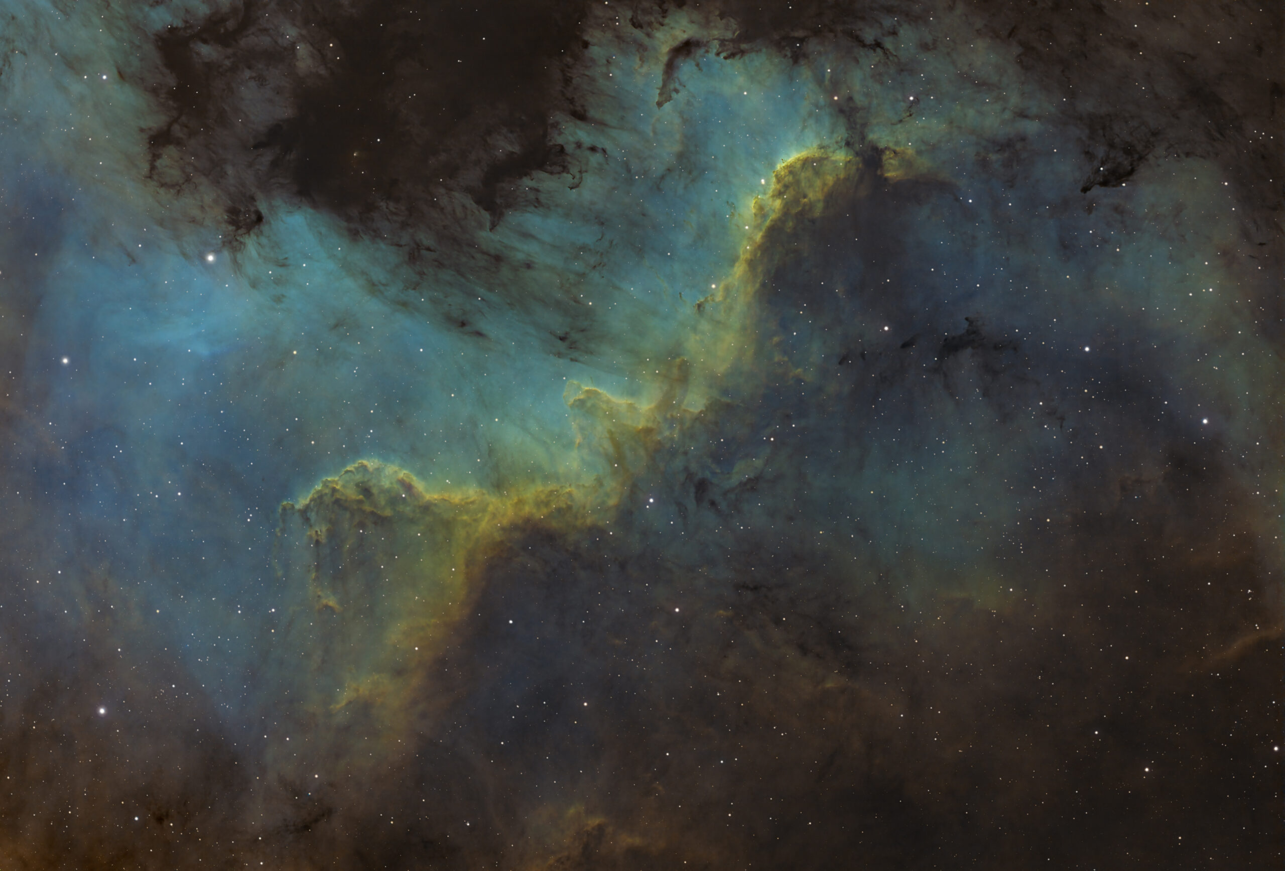 Muro del Cigno, parte della nebulosa a emissione Nord America NGC 7000. Situata nel cuore della costellazione del Cigno