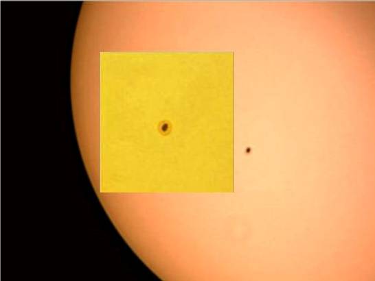 macchie solari,2 riprese 3 luglio, composte con Roxio. Sabato 3 Luglio ho ripreso il Sole,credo con buon risultato:la macchia in “occhialino”,senza riduttore focale,ripresa con Celestron mak 4″,1350 mm. L’immagine solare principale:stessa ottica,con riduttore.