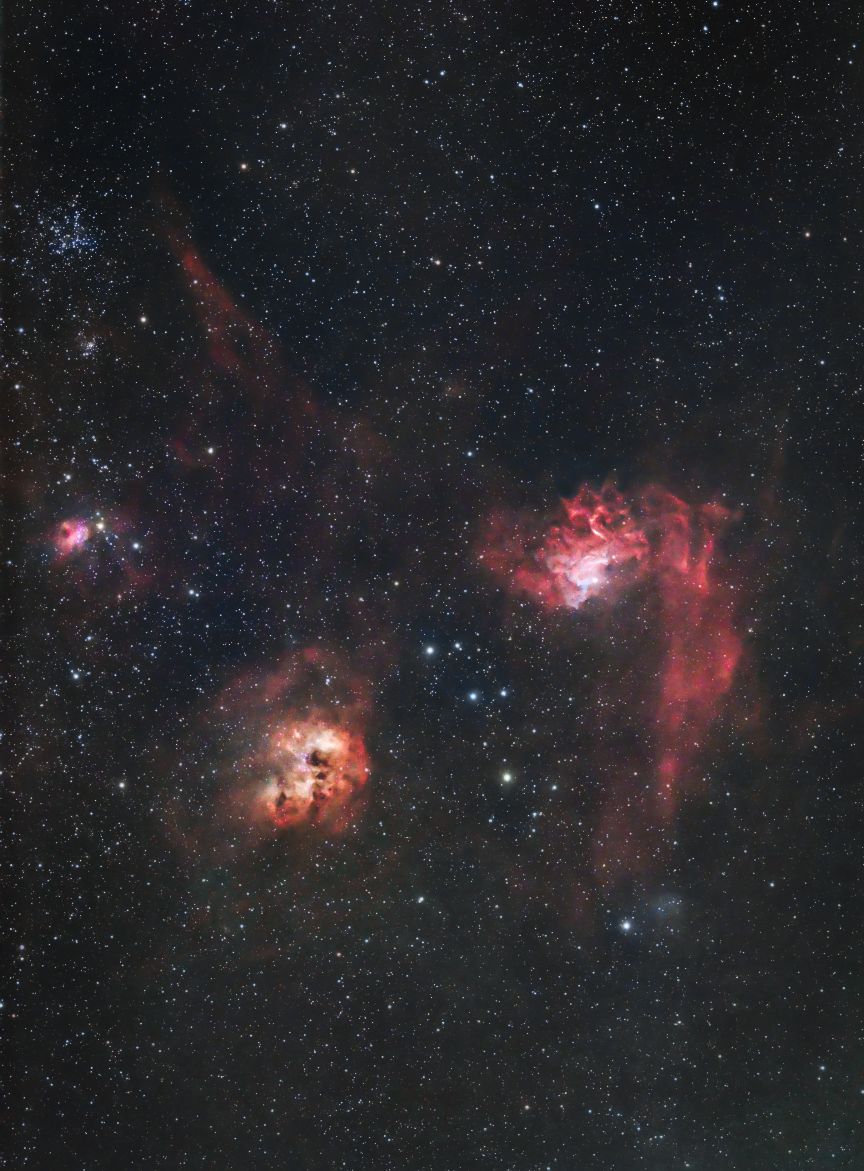 A sinistra della ripresa IC 417 nota anche come Nebulosa Ragno, a 7.500 anni luce, ad essa è legata l’ammasso aperto Stock 8.