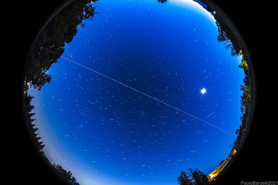 Un passaggio zenitale e completo della ISS ripreso in una (rara…) notte serena e limpida, utilizzando una Canon 6D accoppiata con un Samyang 8 mm. APS-C.
