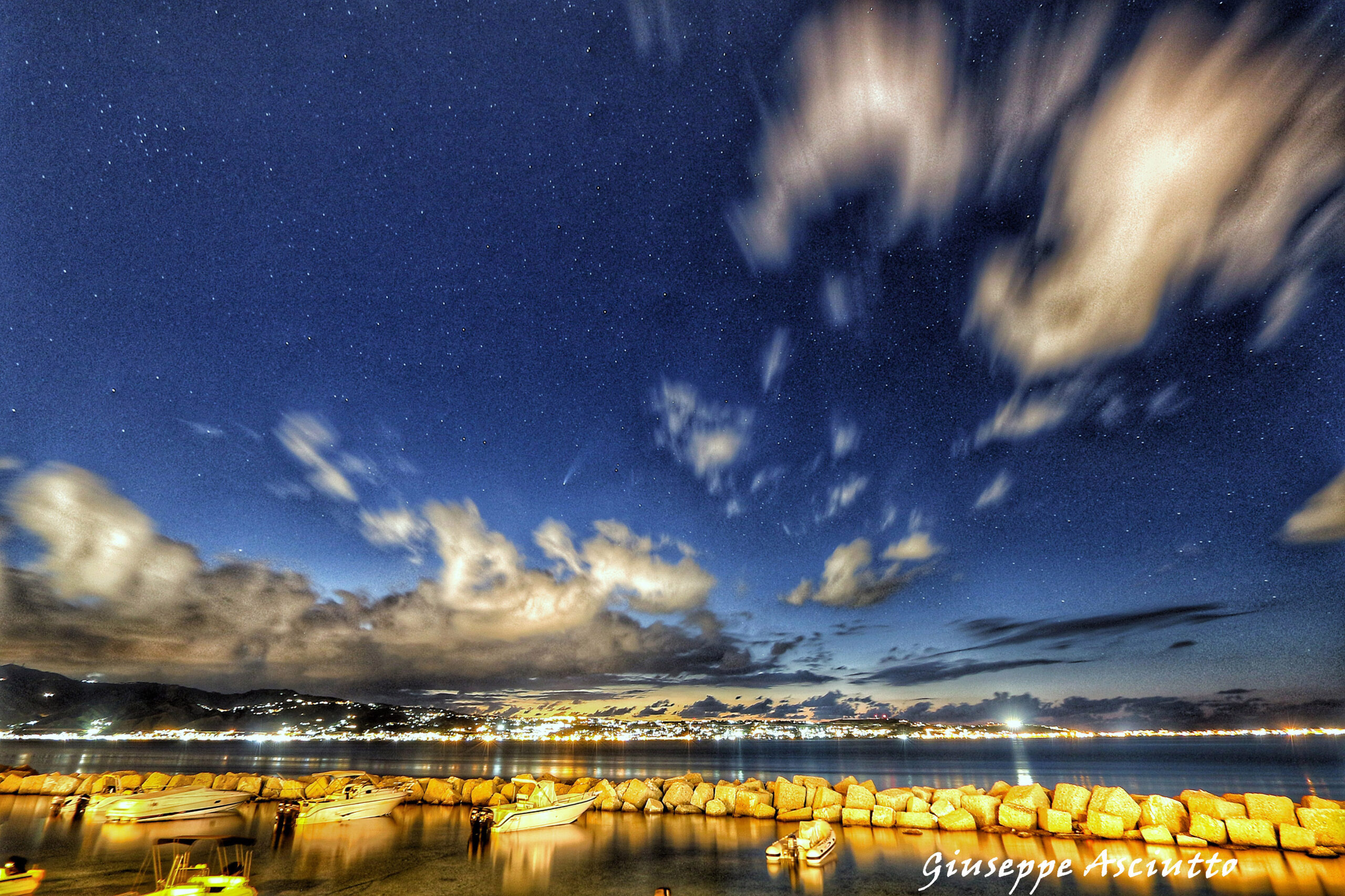 Foto del passaggio della cometa Neowise immortalata sul cielo dello Stretto di Messina