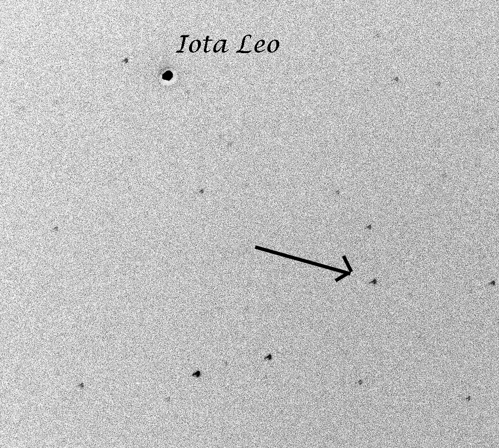 Ho voluto invertire i colori dell’immagine per risaltare meglio l’asteroide.