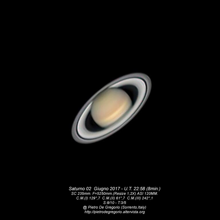 Saturno mostra gli anelli più luminosi,è il cosidetto"effetto Seeliger" che si verifica quando il pianeta è vicino all’opposizione