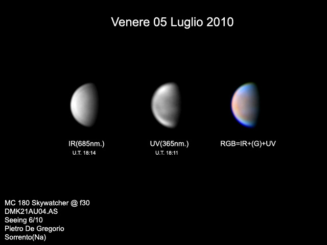 Venere 05 Luglio 2010. Le bande nuvolose di Venere in UV.