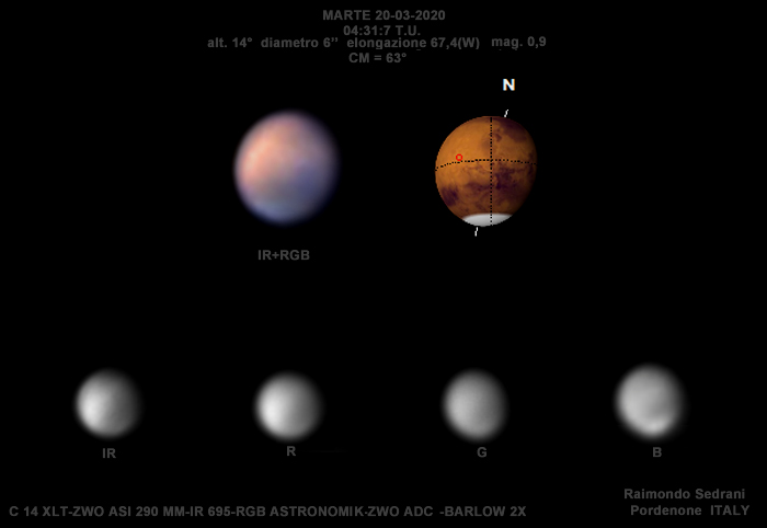 Riprese di ca. 12000 frames per canale. Elaborazione con Autostakkert, Iris, WinJUPOS e Photoshop Elements6