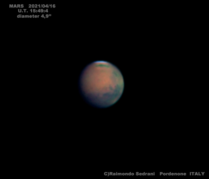 Diametro apparente 4,9”- Distanza 286 milioni di Km.- Riprese in RGB ottenute di giorno.