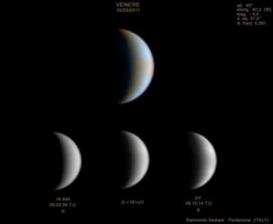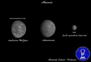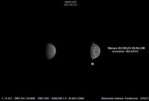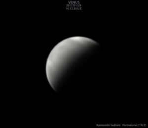 Finalmente! Seeing ottimo come poche (rare)volte capita. L’aberrazione cromatica, in questo caso, dovuta all’altezza(22°)è stata corretta molto bene con l ‘ A.D.C.- Momenti magici ed emozionanti.Il pianeta indimenticabile a 400X, era immobile e pieno di particolari e sfumature di colore. Il tempo di riprendere pochi filmati ed una estesa formazione nuvolosa a messo fine a questo spettacolo.