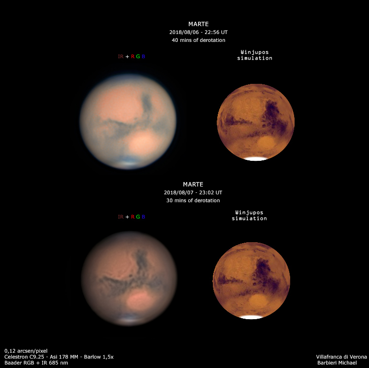 Elaborazione tramite derotazione con winjupos. Acquisizione in serie di canali IR R G e B.