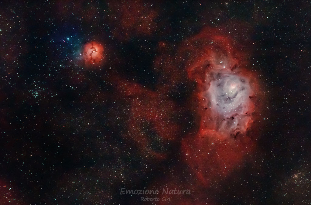 Le bellissime nebulose a emissione M8 e M20 riprese da un buon cielo buio con un tempo di posa tutt’altro che lungo, solo 22 minuti. Da riprovare arrivando a 6-8 h e chissà che meraviglia in più!