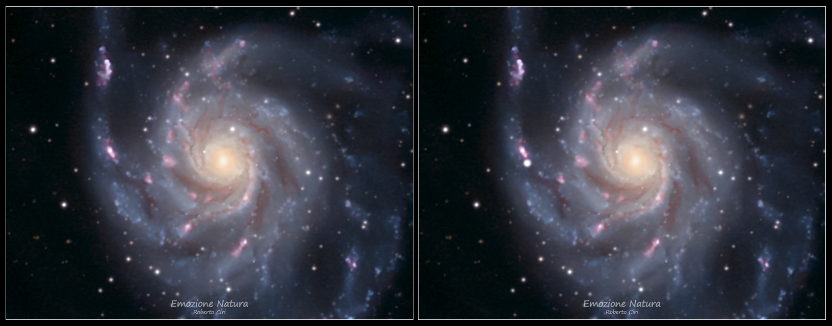 Confronto fra immagini della galassia M101 riprese il 15/02/23 e il 23/05/23