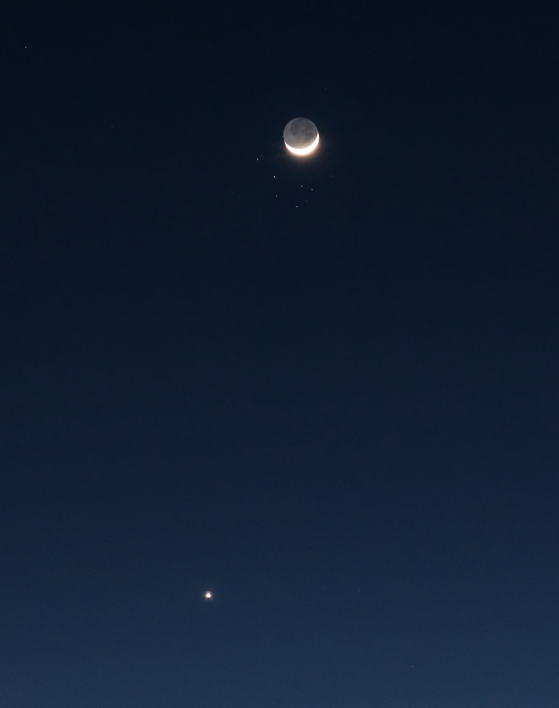 Una foto della bellissima congiunzione di domenica 19 aprile 2026. Canon EOS R100 Obiettivo RF-S 18-45 mm Distanza focale 45 mm ISO 640 F/10 Tempo di esposizione: 3,2 secondi Data e ora: 19 aprile 2026 20:58 Luogo: Cabras, Sardegna, Italia