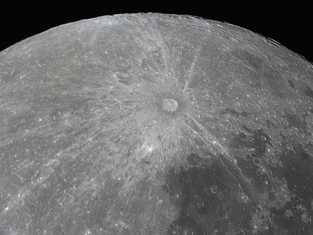 Tycho e la sua enorme raggiera fotografato durante la Superluna al 99%