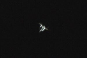 Singolo frame della ISS. Prima foto della Iss a bassa risoluzione ,non ho usato la barlow per facilitare la buona riuscita del risultato .comunque seeing pessimo..
