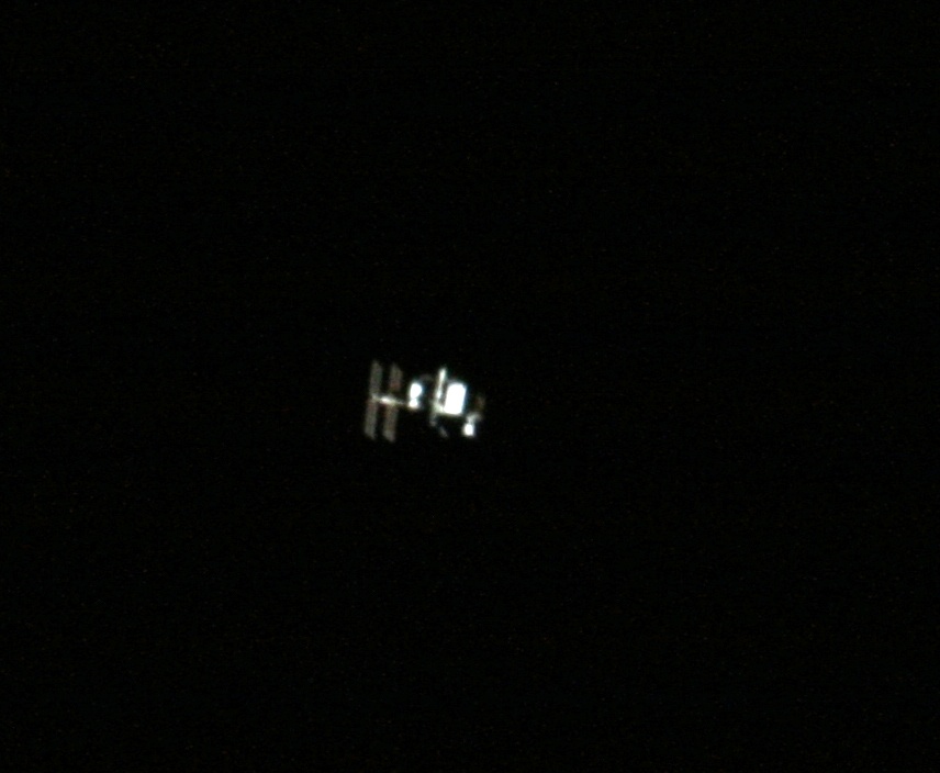 Foto della Iss magn -2.5. Media di 2 frame ottenuti il 19 dicembre col mio mak7″ F15 con canon Eos 350D. Elevazione del passaggio quasi 90 gradi ! Magnitudine -2.5.Nessuna elaborazione .