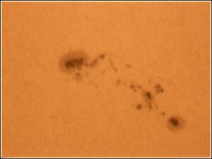 Foto della Iss magn -2.5. Media di 2 frame ottenuti il 19 dicembre col mio mak7″ F15 con canon Eos 350D. Elevazione del passaggio quasi 90 gradi ! Magnitudine -2.5.Nessuna elaborazione .