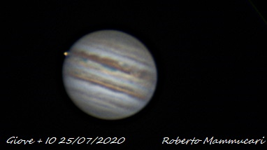 Giove, nella sera del 25/07/2020 con la sua lua Io prima che lo occultasse.