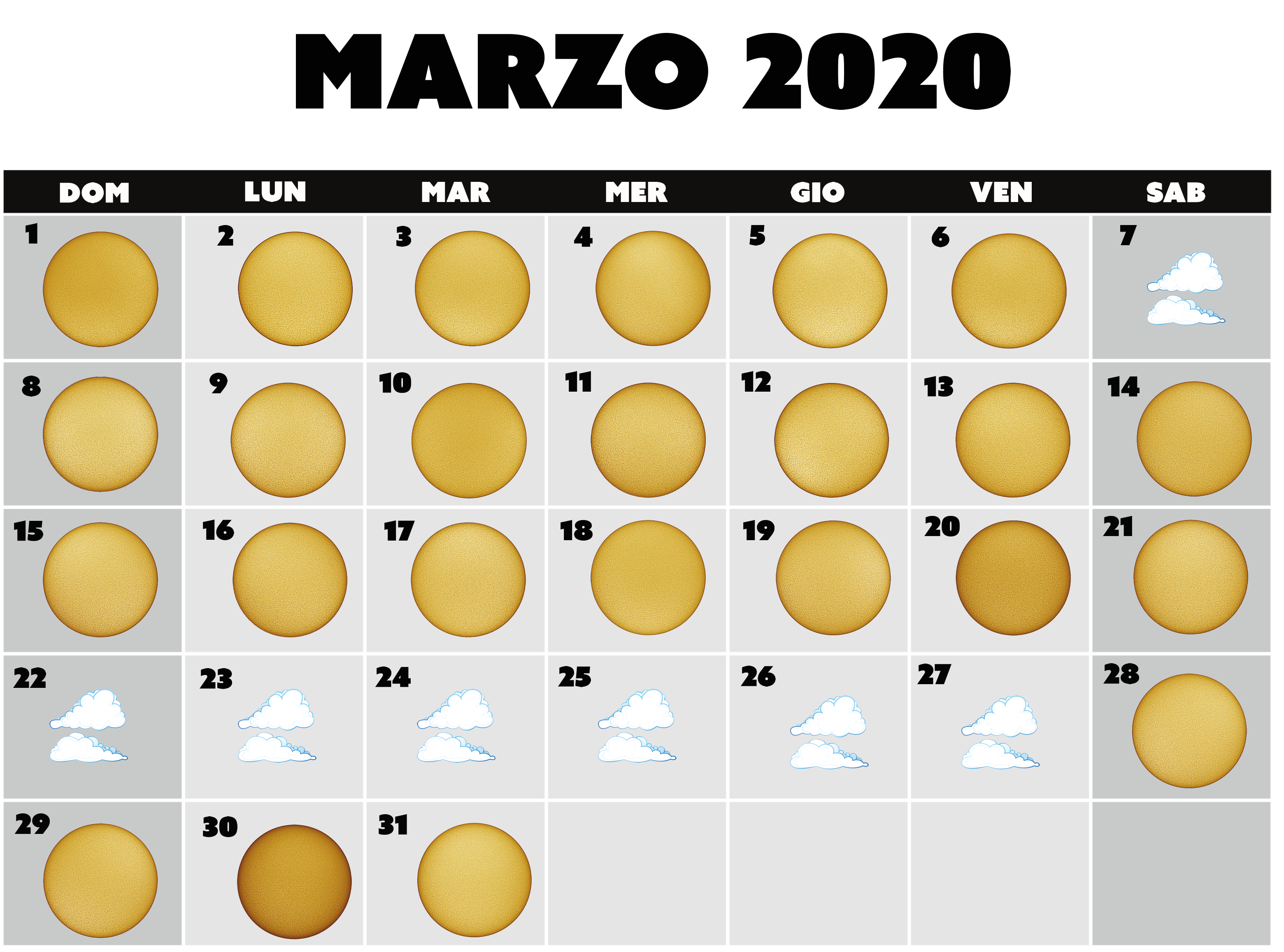 Mio personale calendario solare del mese di marzo 2020