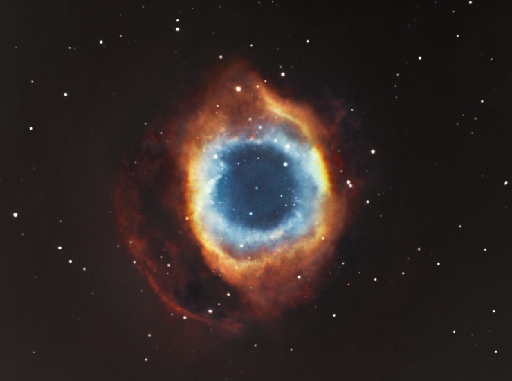helex nebula. 4 ore di luminanza in bin. 1×1 con il Borg 101 f 6,4 e 1 ora per canale OIII e 1 ora in SII con bin. 3×3