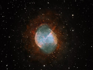 Luminanza in Ha per evidenziare i gusci esterni. E’ il risultato di pose ottenute dall’anno scorso con l’Intes 8″ e l’Artemis , il 10″ dell’osservatorio di Tomatis quando è transitato a casa mia prima di arrivare a Canino , e ultimo in due notti, con il Meade12″ a f6,7 e la ST10x , le pose in Ha sono approssimativamente 16 h, . OIII 2h e RGB non ho più i dati .