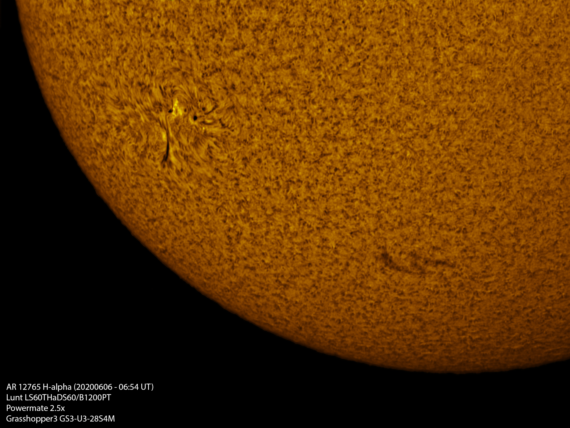 Regione attiva 12765 ripresa in H-Alpha.
