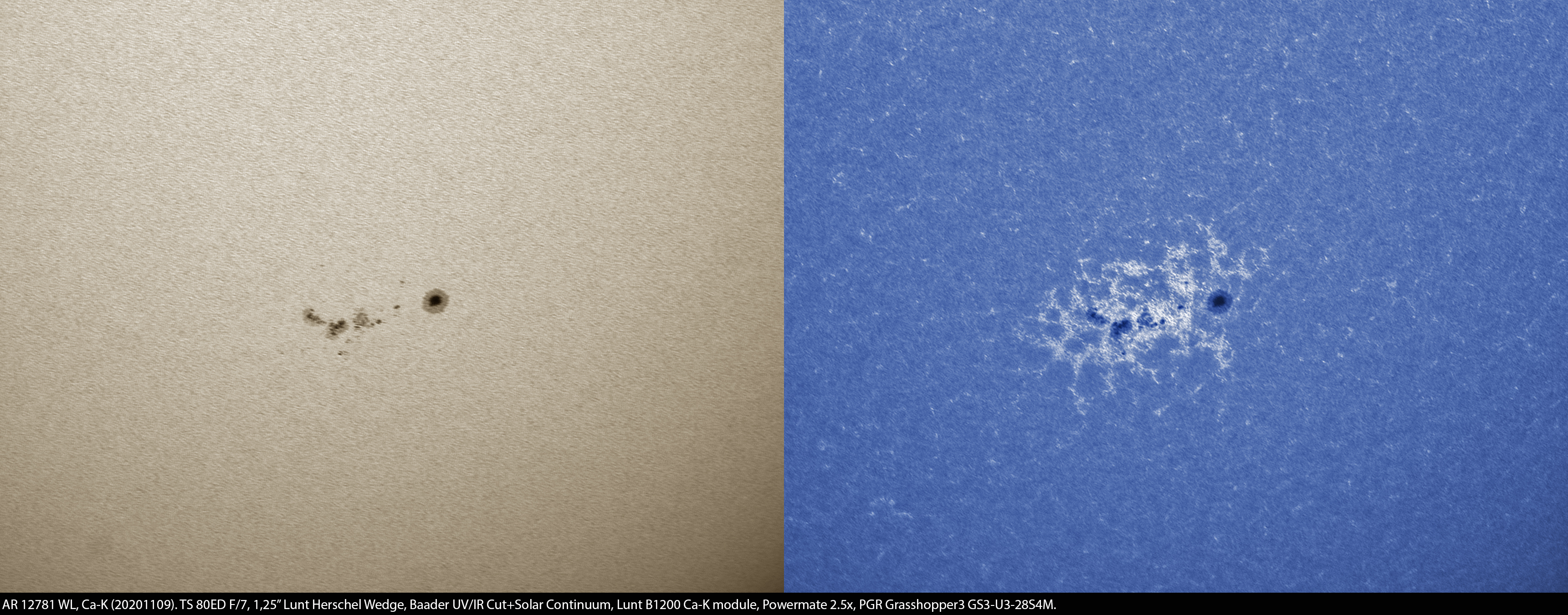 Regione attiva AR 12781 ripresa in luce bianca e Ca-K