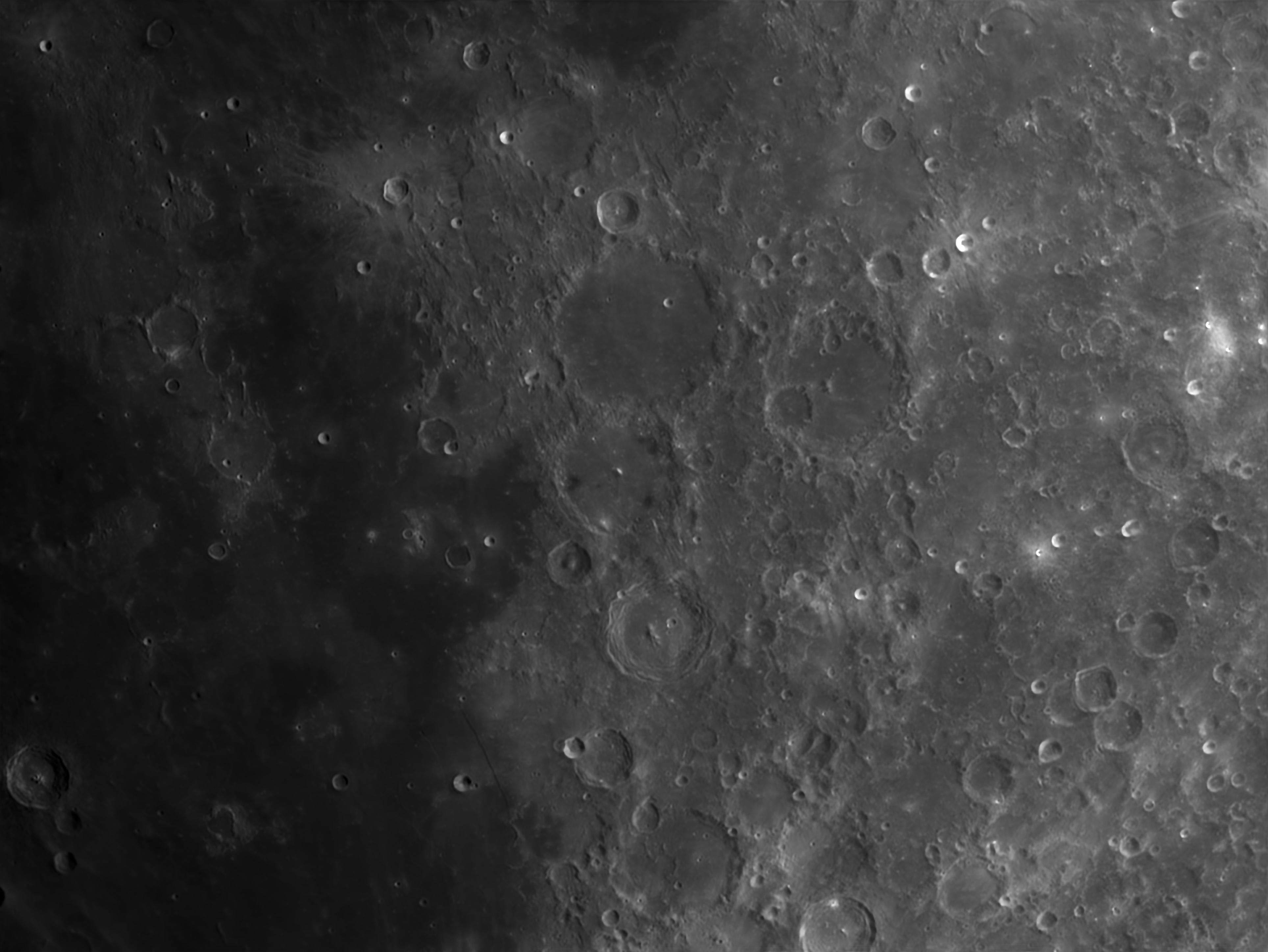 Crateri Ptolemaeus, Alphonsus e Arzachel. TecnoSky APO SLD 130/900, Tele Vue Powermate 2,5x, Baader IR-Pass, camera PGR Grasshopper3 GS3-U3-28S4M