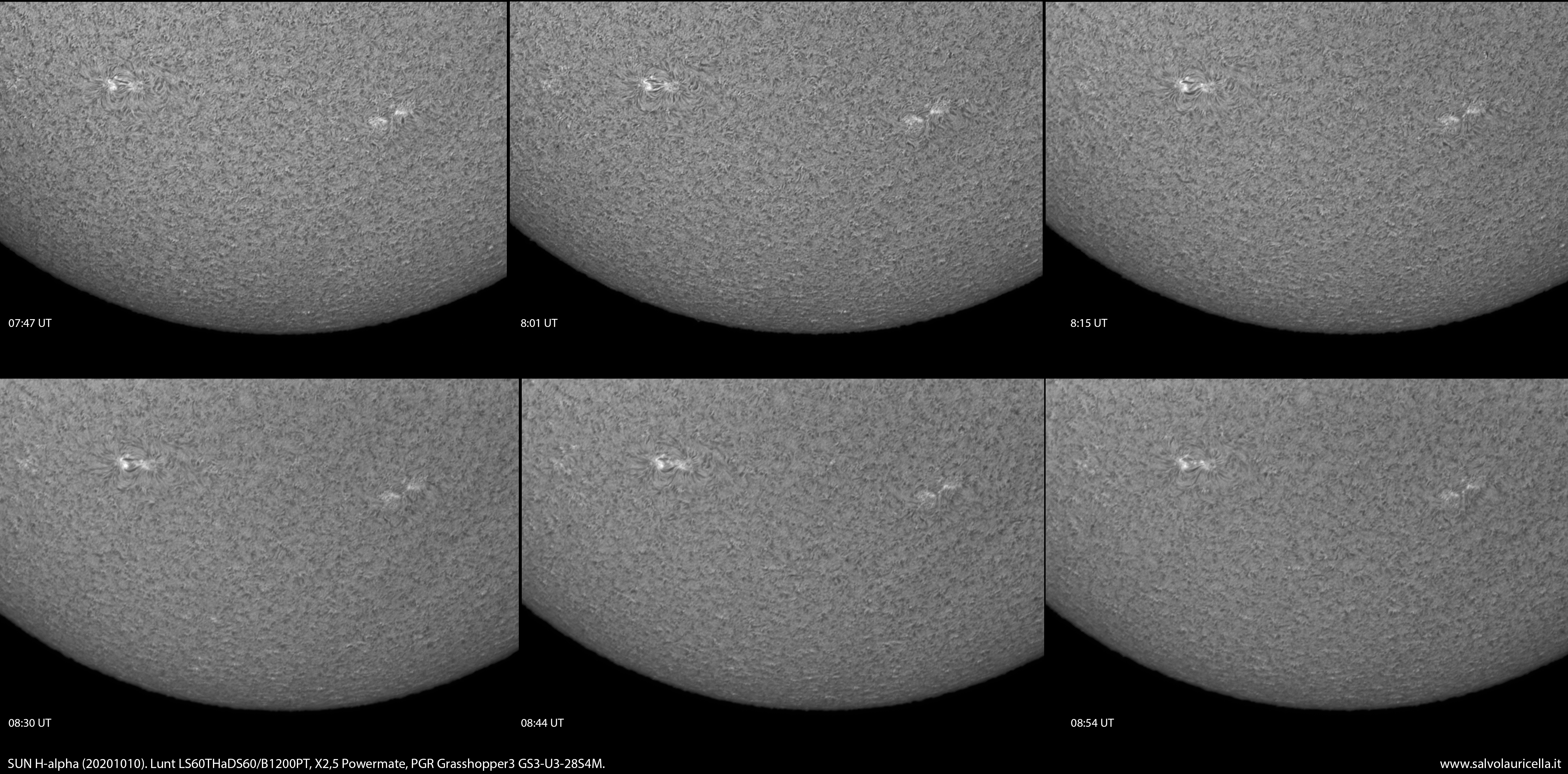 Evoluzione di due regioni attive; riprese effettuate nel corso di un’ora.