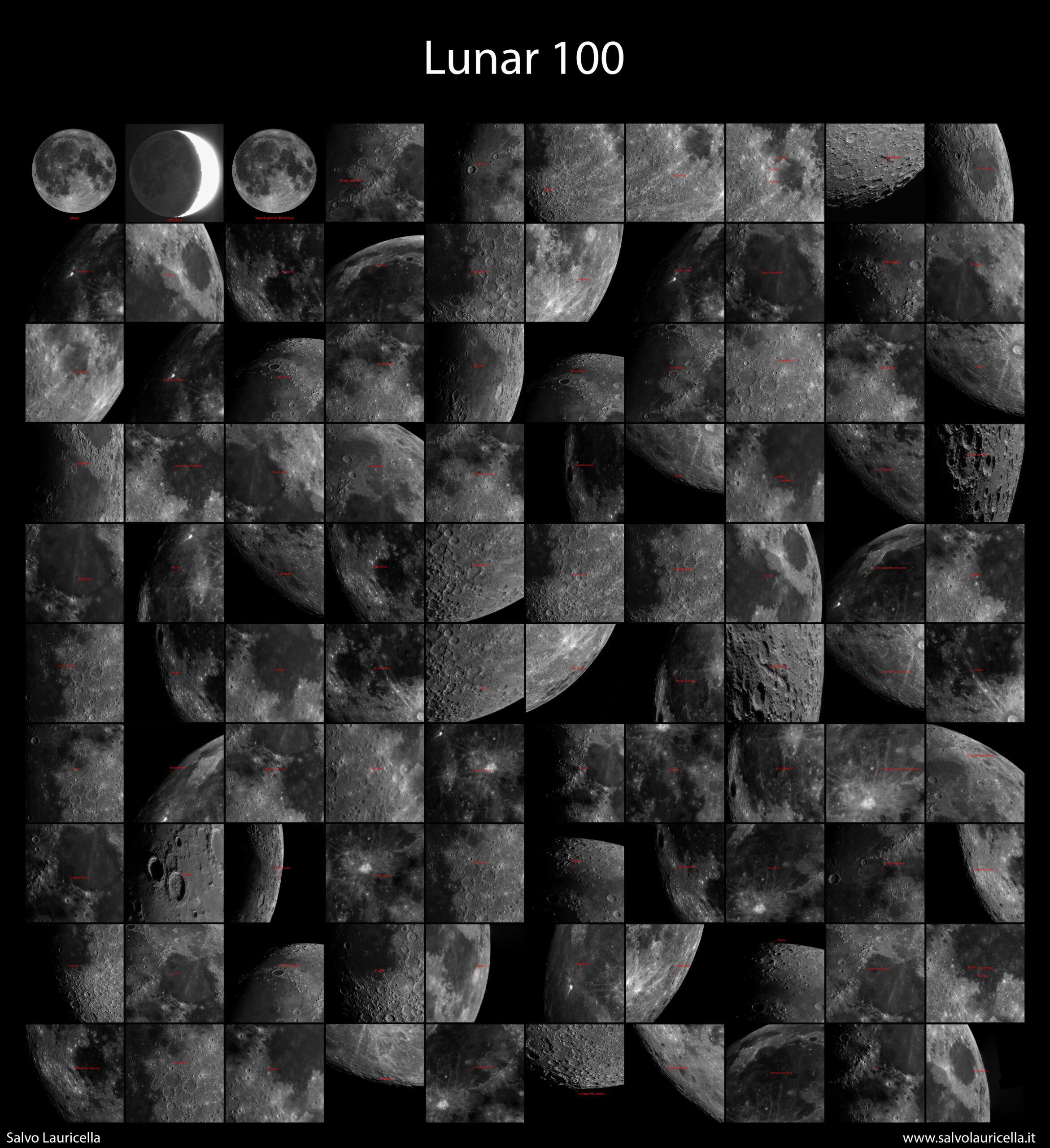 Il Lunar 100 è un elenco delle 100 formazioni più interessanti da osservare sulla Luna. L’elenco è stato descritto da Charles A. Wood nell’articolo The Lunar 100 nel numero di aprile 2004 della rivista Sky and Telescope.