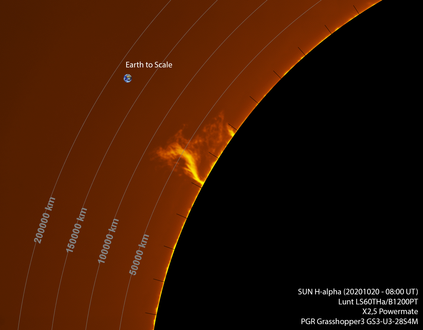 Vistosa protuberanza solare ripresa con Lunt 60 e Powermate 2.5x.