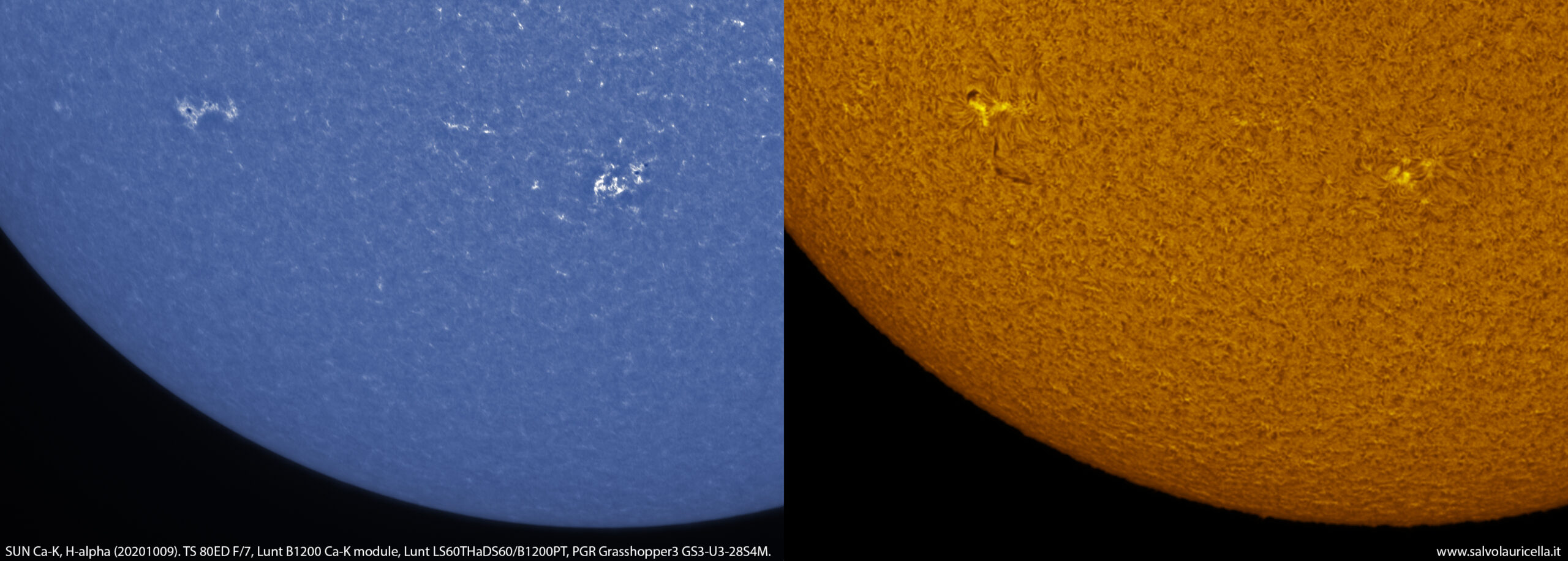 Regioni attive solari riprese nella riga Ca-K e H-alpha.