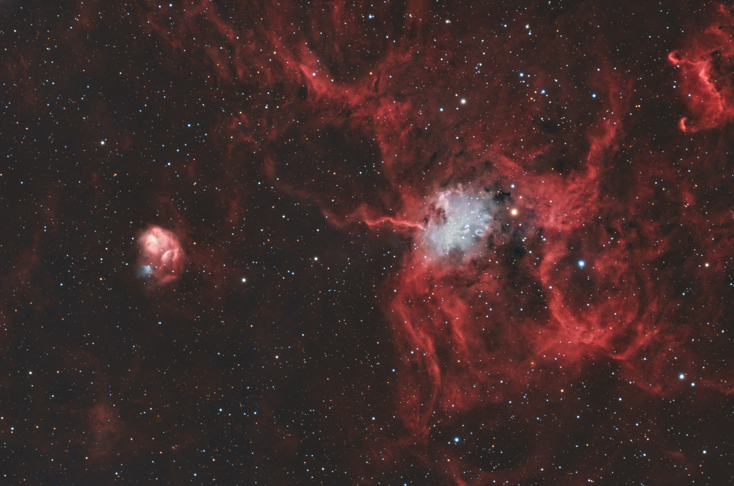 Nebulosa Ragno IC417 e Nebulosa Mosca NGC 1931 a cura di Salvo Semilia e Veronica Perogio Nebulose Ragno e Mosca, situate nella Costellazione dell’Auriga, rispettivamente a 10.000 e 7.000 a.l. dalla Terra. La Ragno è composta da filamenti di nebulosa ad emissione che ricordano le zampe, appunto, di un ragno e contiene all’interno di essa un ammasso aperto nominato Stock 8. La Mosca viene anche chiamata Orione in miniatura, in quanto ne condivide alcune caratteristiche. Si tratta di una nebulosa sia ad emissione che riflessione e anch’essa contiene un ammasso aperto. Entrambe le nebulose sono state studiate dal telescopio IRAS poiché contengono le sorgenti di radiazioni infrarosse e, nella Mosca, di un maser (produzione di onde elettromagnetiche utili per definire la presenza di determinate sostanze molecolari) di H2O. Progettino autunnale a cura di Veronica Perogio e Salvo Semilia. Alla resa dei conti, la quantità maggiore di dati di queste combo non apportano chissà quale grande miglioria, ma noi ci divertiamo un botto e le facciamo comunque. L’acquisizione di dati è avvenuta nelle notti di Dicembre 2025 da Castelfidardo (AN) e Modica (SR) con frame da 600 e 300 per un totale di 34h. Strumentazione TS Optics 115/800 Zwo Asi 2600 MC Pro Eq6-R IDAS NBZ Nebula Booster- – – – – – – – – – – – – – – – – – – SkyWatcher 80ED Zwo Asi 294 MC Pro Eq6 – mod Rowan L-Enhance Software Asi Air PLUS, SharpCap, NINA, PHD2, Pixinsight, Photoshop, Lightroom