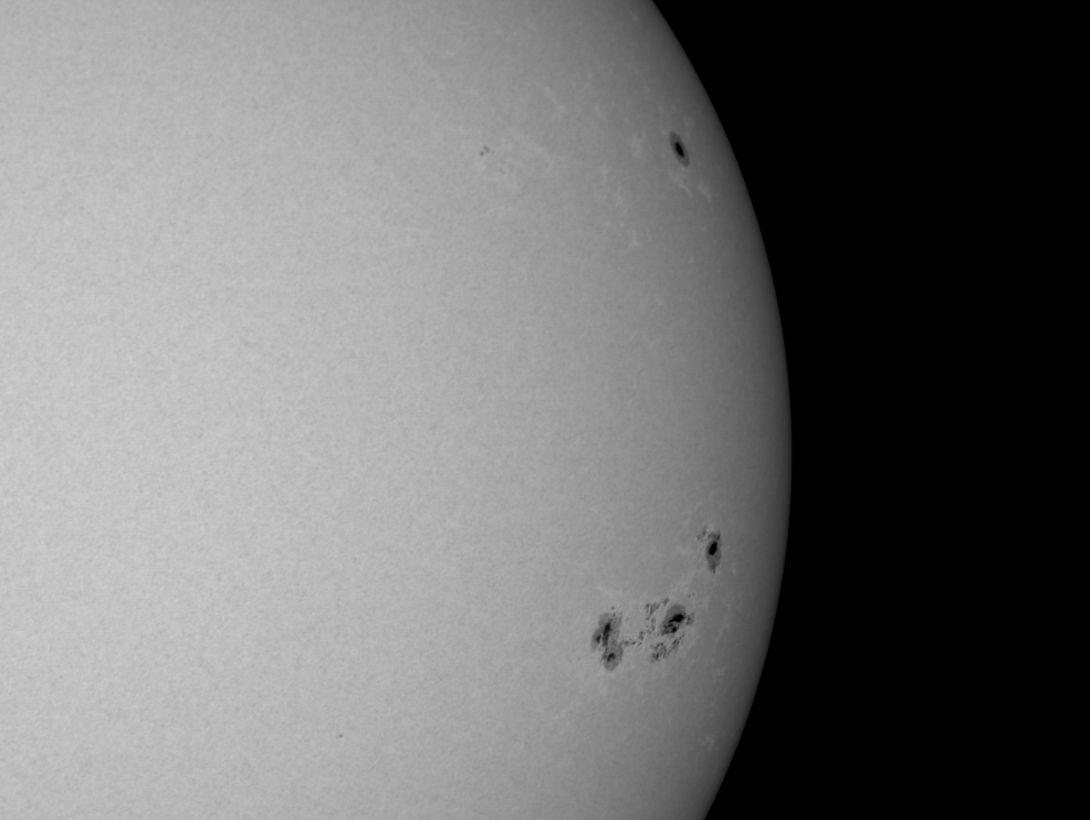 Il Sole sta continuando a regalare gruppi di macchie solari spettacolari ed enormi… Skywatcher 80Ed con prisma di Herschel Apm con filtro Baader nd 3 e polarizzatore. 562 frames con Camera Chameleon BN. S. Gasparini. www.astrobook.it Luogo di ripresa: Castelfiorentino (Fi) Forte Turbolenza