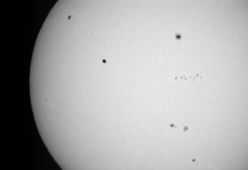 15.10.2011 Ore 10.11: Trattasi di un frame ripreso da un filmato di 22 sec del Sole, con un rifrattore Skywatcher 80Ed e prisma di Herschel Apm con camera Chamelon (immagine invertita) . Si vede un oggetto che transita sul disco del sole. Il filmato del transito, che dura 1 sec è sul mio sito www.astrobook.it nella sezione Notizie e Curiosità. Avete notizie di transiti di satelliti o altro a quell’ora?