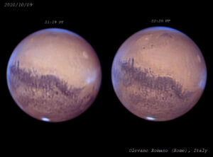In evidenza la Valles Marineris e l’Olympus Mons in alto a sinistra.
