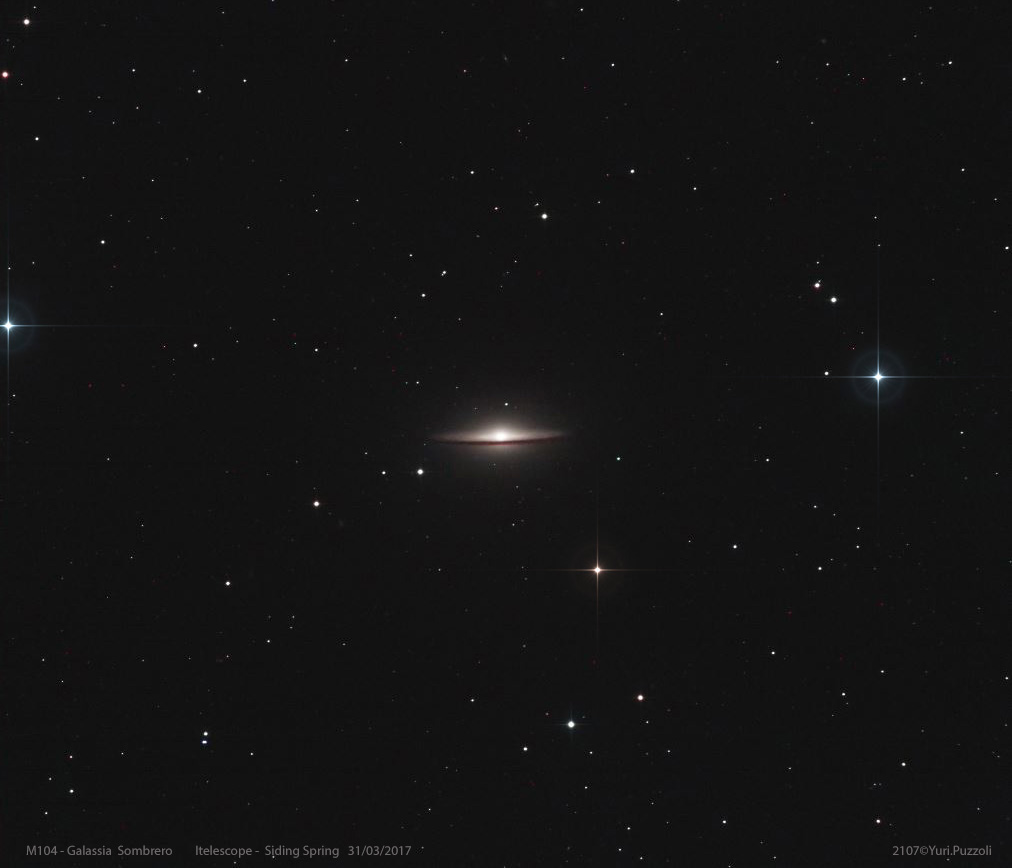 Distante da noi 30 milioni di anni luce è la galassia lenticolare per eccellenza. Spettacolare la sua banda di polvere nel disco. Chiamata sombrero per la sua particolare forma del bulge.
