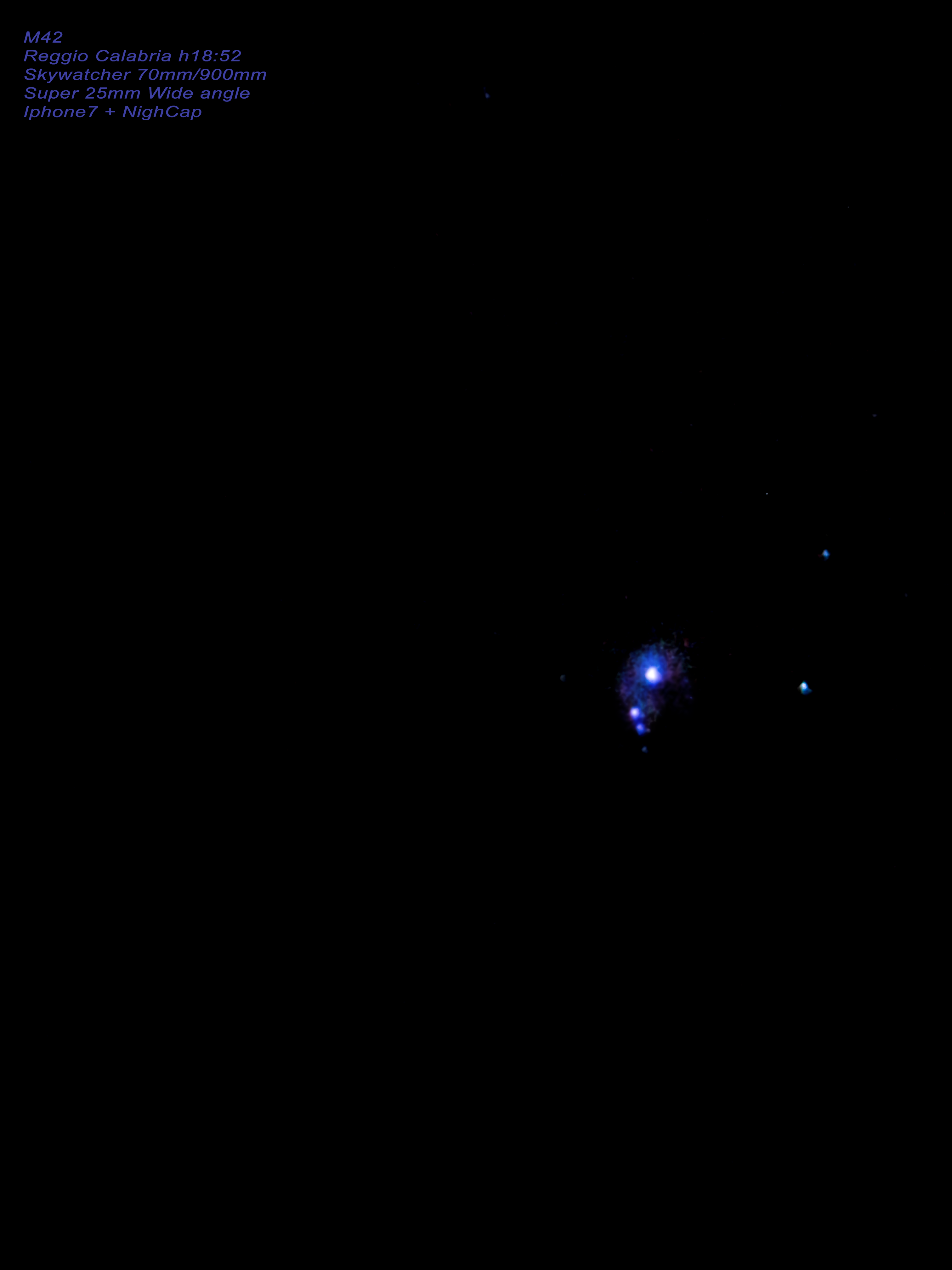 Nebulosa di Orione, Skywatcher 70mm/900mm + oculare Super 25mm wide angle.
