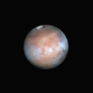 interesting S-shaped cloud formation at the center of the planet, visible through the blue light very well , through Cassegrain NortheK 10" to f/52 RGB image , 2012/03/16
