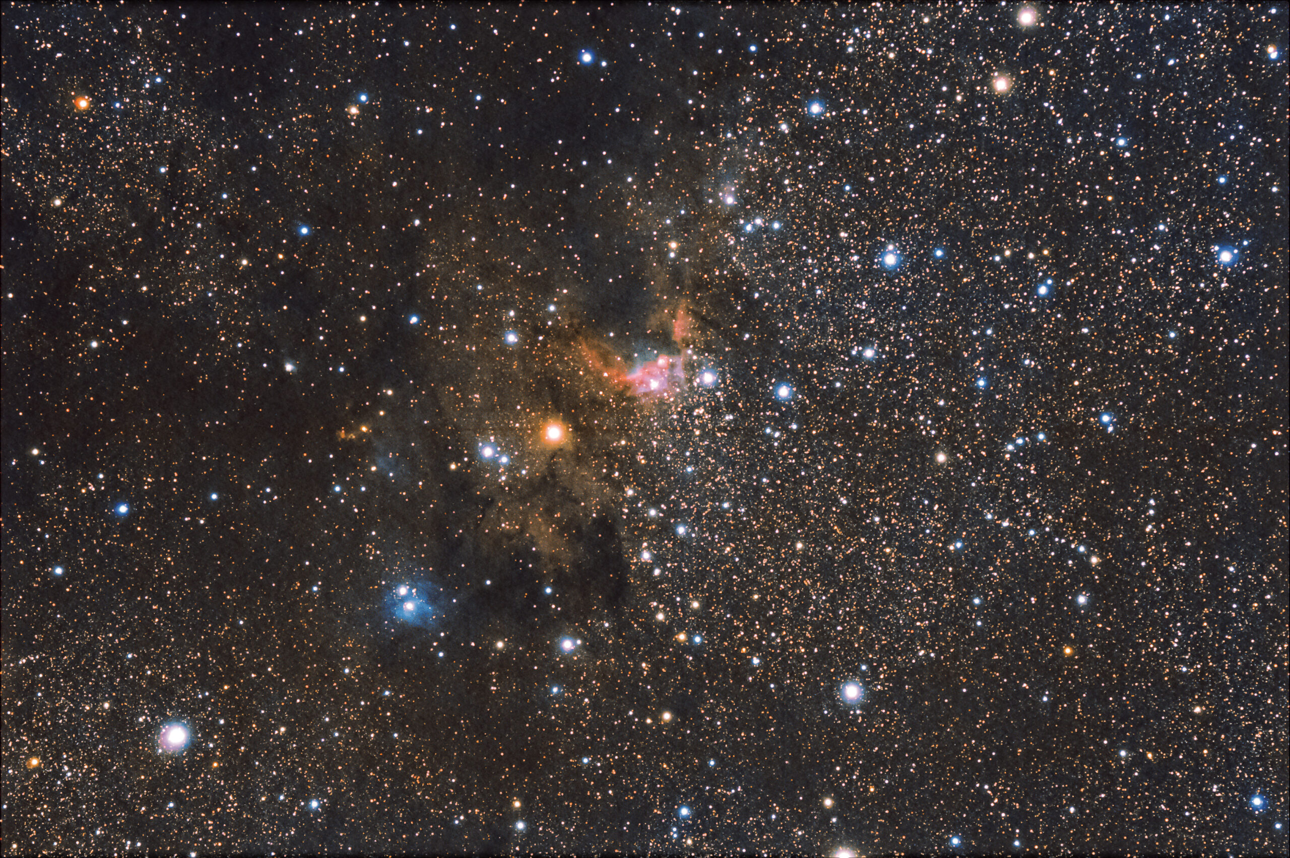 SH2-155 (cave nebula) ripresa il 10 novembre da Capracotta località Prato Gentile (IS) serata molto umida infatti dalle 18 alle 20 eravamo in nube spessa poi cielo sereno ma con umidità al 99% scesa in tarda notte all 80% ed in attesa che sorgesse orione ho ripresa questa nebulosa.
