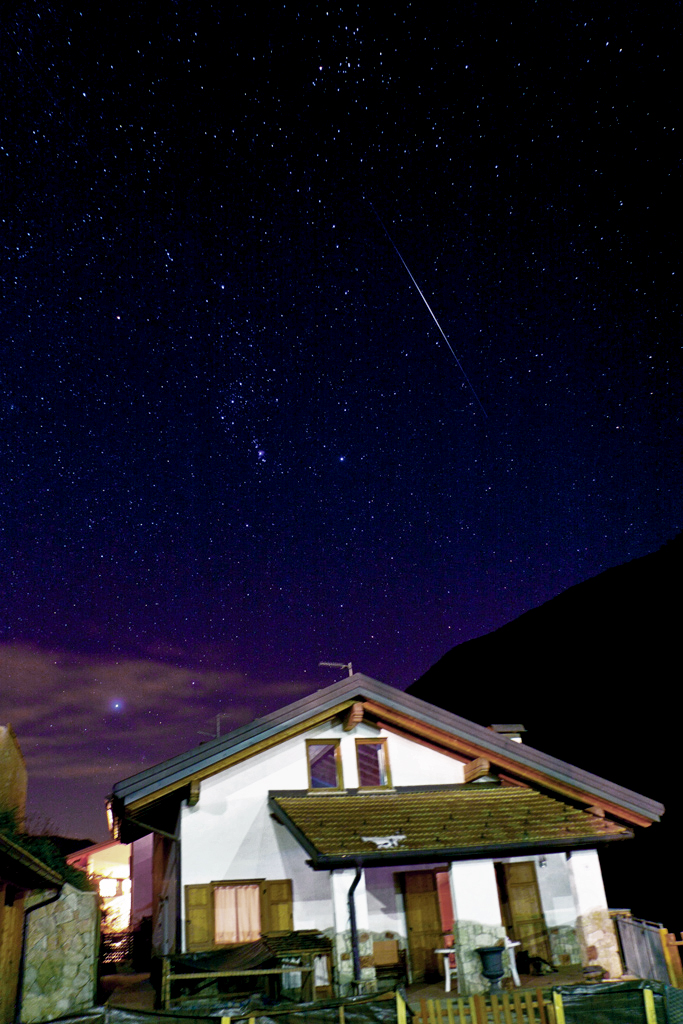 Un bel flare (bagliore-riflesso) Iridium in una zona del cielo particolarmente attraente. Orione confina con la costellazione di Eridano dove si è reso visibile il passaggio del satellite Iridium 10 con un flare che ha raggiunto al suo massimo di luminosità una magnitudine di -3,4. Questo è solo uno degli oltre settanta oggetti facenti parte della flotta Iridium destinata alla trasmissione della telefonia satellitare. La particolare efficienza nel riflettere la luce solare, combinata con la giusta angolazione, delle antenne di trasmissione e dei pannelli solari di questi oggetti
