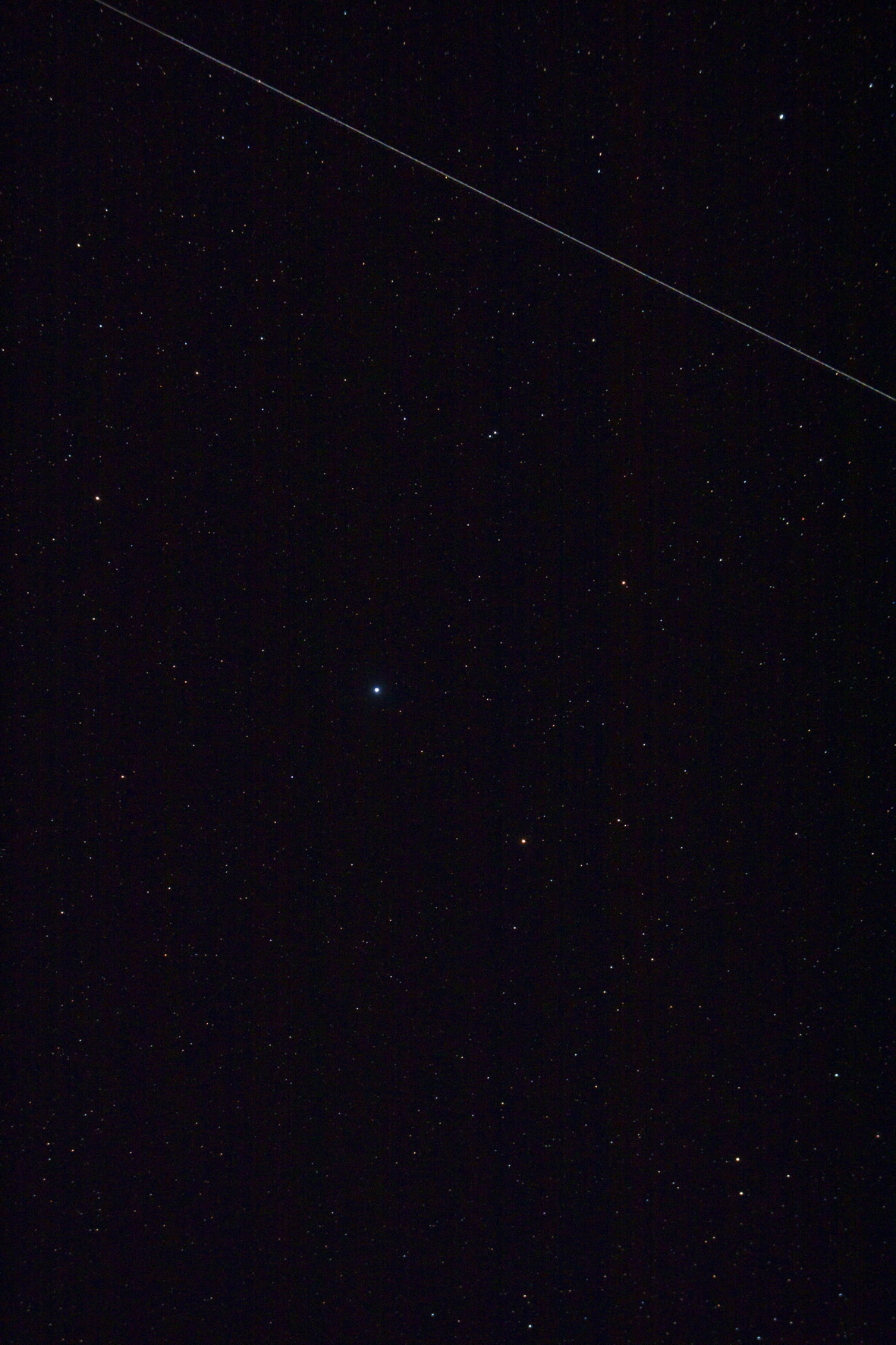 Sono molto pochi i transiti della Stazione Spaziale Cinese Tiangong osservabili dal Nord Italia a declinazioni elevate come in questo caso e magnitudini prossime allo zero. Questa immagine copre un campo di 3 gradi circa, centrata poco a destra della stella Theta Aquilae (mag.3,2) e mostra in alto la strisciata luminosa del satellite, che in quel preciso momento brillava di magnitudine 1,5 a oltre 500 km. dalla superficie terrestre. Il Nord è in alto.