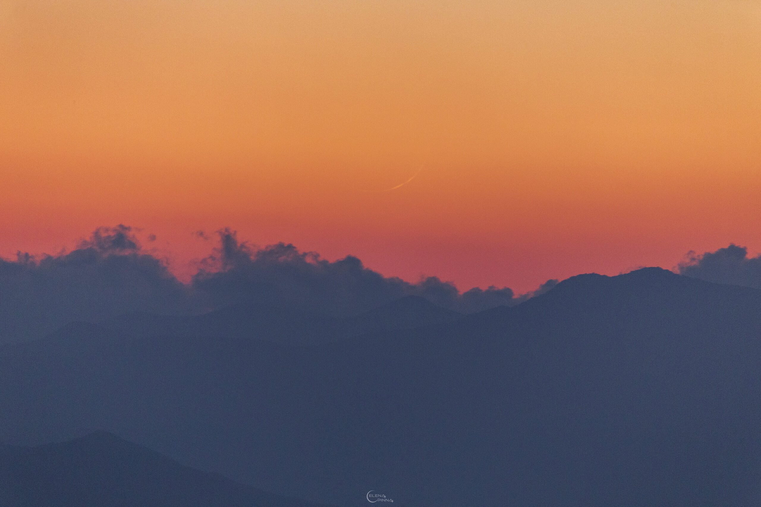 Ho scattato questa foto il 1 maggio alle ore 20.55. Avevo solo pochi minuti per trovare la luna e c’era un fortissimo vento che muoveva l’obiettivo. I colori del tramonto hanno reso lo spettacolo irresistibile.