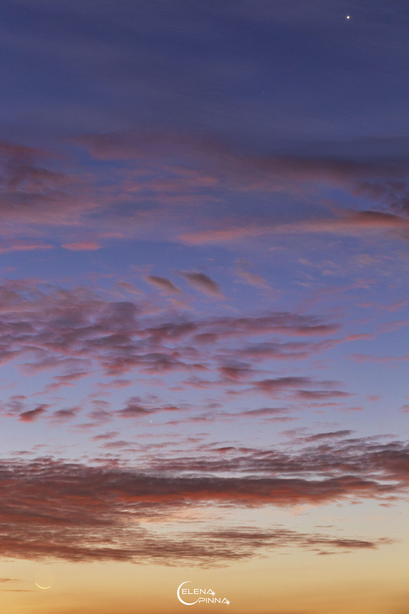 Luna di 28.5 giorni illuminata all’1.3% in congiunzione con Mercurio e Venere.